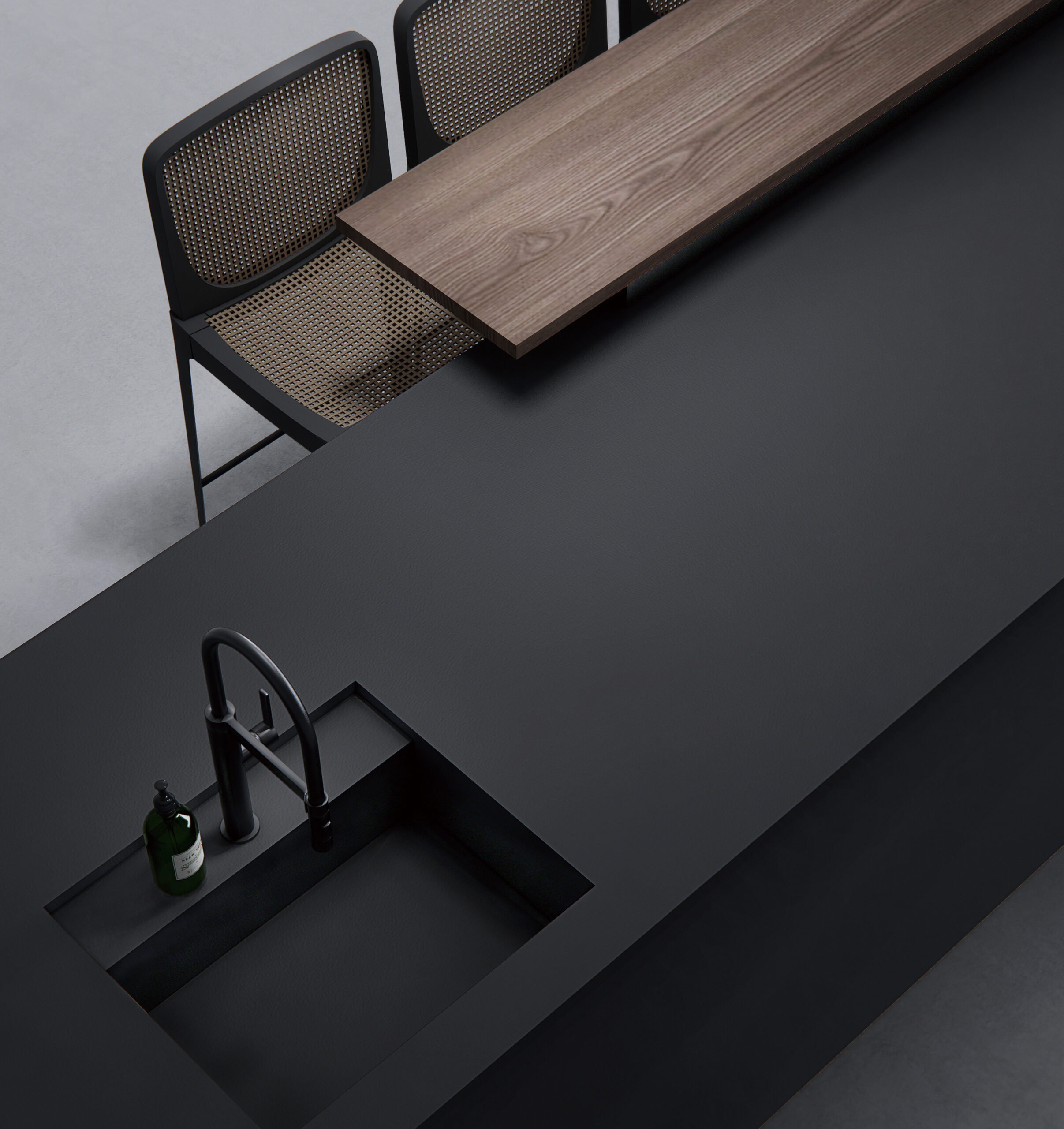 Indulge in the dramatic allure of Pure Black sintered stone slabs. Reminiscent of the depth and mystery of natural black granite, these slabs add a touch of sophistication and intrigue to interior designs, making a bold statement in any setting. Indulge in the dramatic allure of Pure Black sintered stone slabs. Reminiscent of the depth and mystery of natural black granite, these slabs add a touch of sophistication and intrigue to interior designs, making a bold statement in any setting.